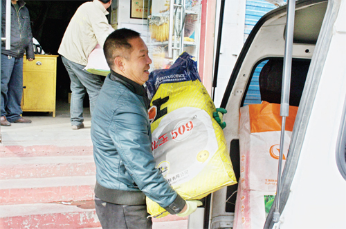 2月13日,原平市宇峰種業(yè)工作人員正在為種子銷售點(diǎn)運(yùn)送各種優(yōu)良種子。目前該市農(nóng)資部門已經(jīng)為農(nóng)民們準(zhǔn)備好了各種化肥、種子、農(nóng)機(jī)具等,為今年春耕備耕做好了準(zhǔn)備。(趙春曉 攝)
