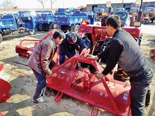 七九河開,八九燕來。春耕生產(chǎn)開始之際,農(nóng)民們開始為春耕做準(zhǔn)備。圖為原平市大陽村村民王師傅正在購買農(nóng)機(jī)。(李玉生 攝)