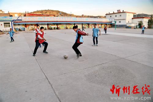 隨著《中國足球改革發(fā)展總體方案》的出臺,靜樂縣將足球作為學校體育課必修內容,以加快推進校園足球運動全面開展。圖為該縣利民小學足球興趣班學生在放學后踢足球的場景。(閆曉梅 攝)