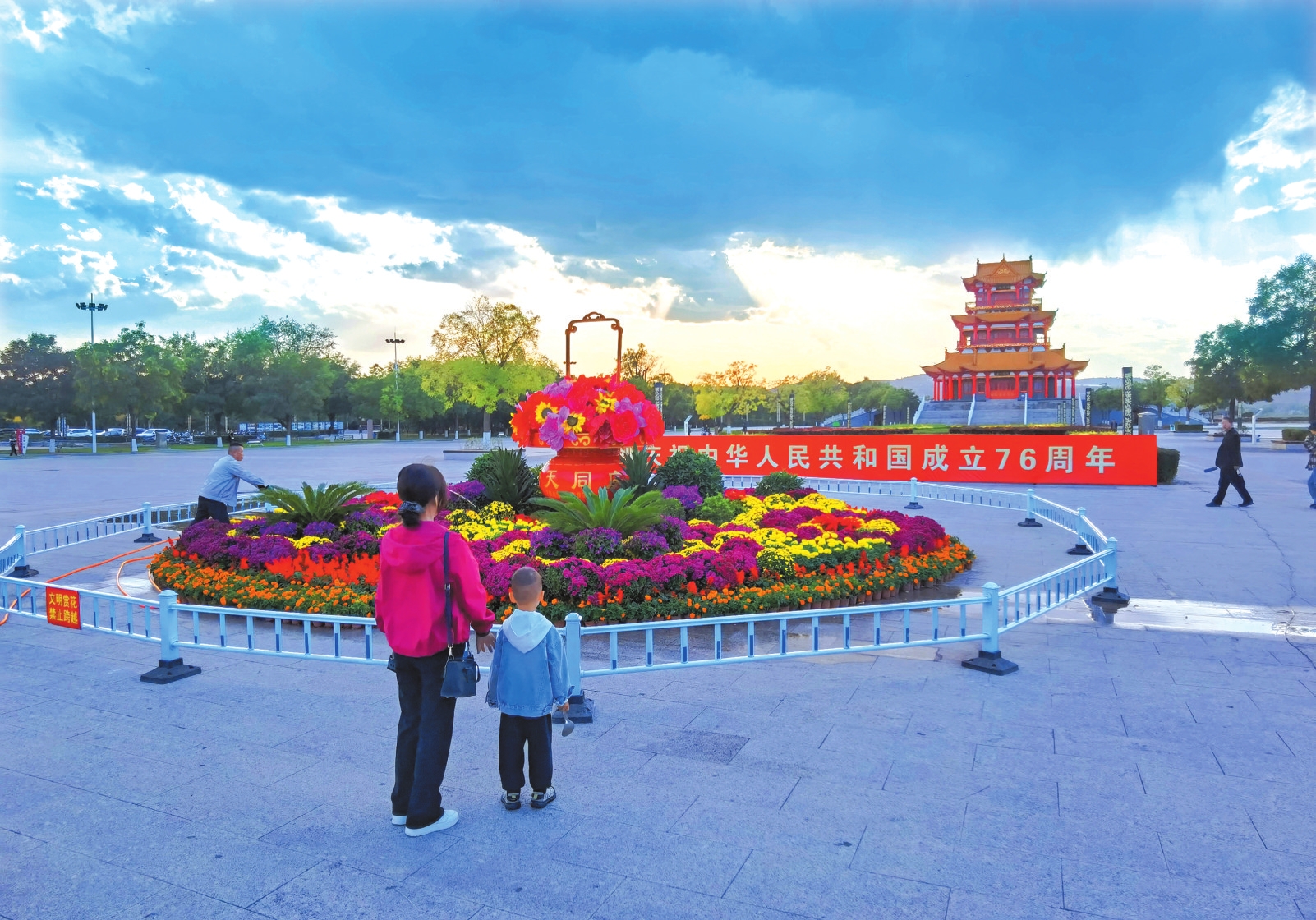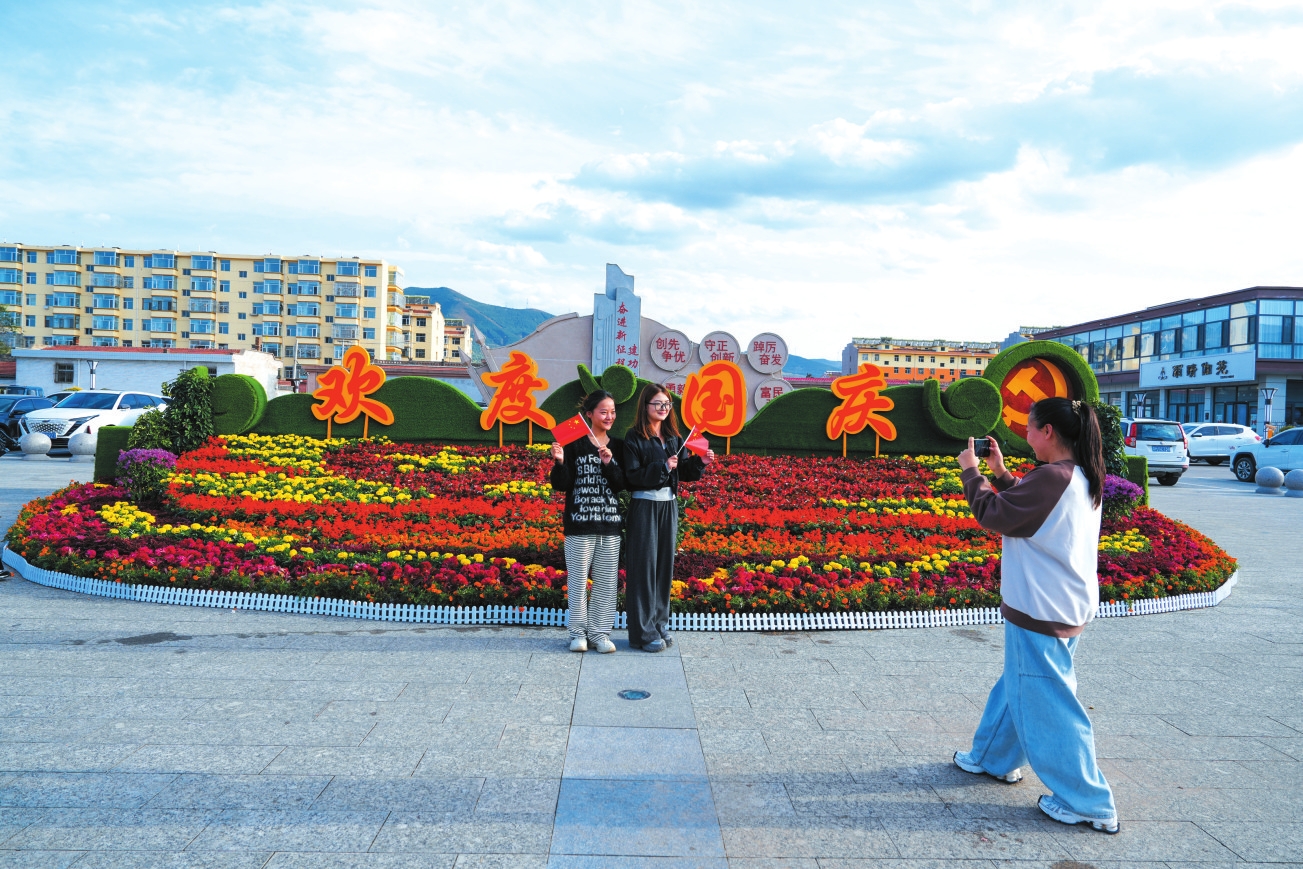 河曲縣臨隩公園國(guó)慶主題花壇。張玉明攝