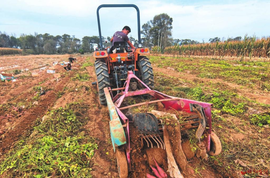 10月13日,忻府區(qū)北合索村村民在收獲紅薯。該村引進(jìn)新品種,增施有機(jī)肥,加強(qiáng)科學(xué)管理,提高紅薯產(chǎn)量和品質(zhì),帶動(dòng)農(nóng)民增收。 (記者 劉紀(jì)森攝