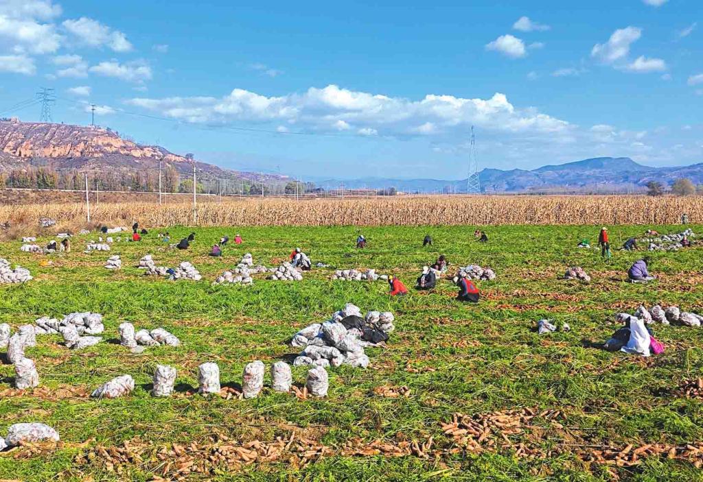 深秋的靜樂縣段家寨村,汾河岸邊的田野里一派熱火朝天的景象。村民們?cè)诖渚G的胡蘿卜纓間彎腰采收,一個(gè)個(gè)橙紅飽滿的胡蘿卜從泥土中“探”出頭來;不遠(yuǎn)處的村口,駐村工作隊(duì)員正和村民們一起將打包好的胡蘿卜裝車,一輛輛貨車即將載著這份豐收的喜悅駛向遠(yuǎn)方。今年,段家寨村迎來玉米、土豆、胡蘿卜大豐收,其中胡蘿卜產(chǎn)量突破200萬斤,成為村里增收的“金疙瘩”。