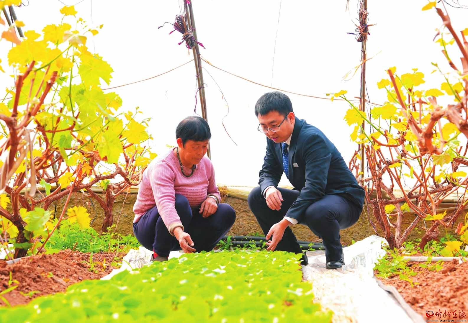 今年以來,忻州農(nóng)商銀行聚焦鄉(xiāng)村特色種植產(chǎn)業(yè),通過加大信貸投放、加強技術(shù)指導(dǎo)等方式,切實幫助大棚種植戶解決生產(chǎn)經(jīng)營中面臨的資金與技術(shù)難題,為產(chǎn)業(yè)發(fā)展注入了金融動力。圖為該行工作人員在大棚種植基地了解作物生長情況。(任飛鴻攝)