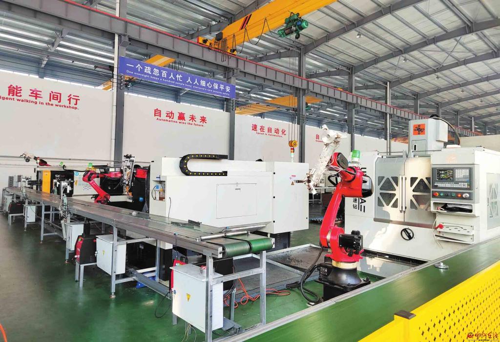 定襄縣高新技術(shù)創(chuàng)新服務中心小法蘭智能化生產(chǎn)線,是企業(yè)與高校合作研發(fā)的智能化生產(chǎn)成果轉(zhuǎn)化項目。該生產(chǎn)線可實現(xiàn)從原材料上料、加工到成品下料的全流程無人化操作,與過去法蘭生產(chǎn)線相比較,加工效率提升了約30%,產(chǎn)品生產(chǎn)成本整體降低了30%。(張玉虎 攝)
