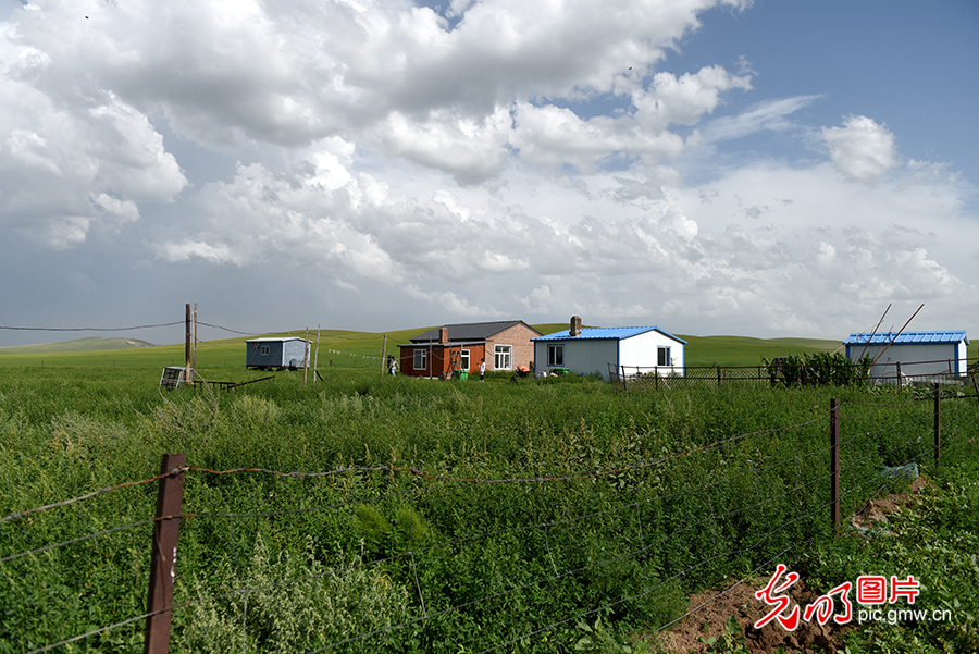 在其日麥拉圖家附近還有三所小房子,這是其日麥拉圖給自己的三個(gè)兒子準(zhǔn)備的。“兒子們都在旗里買了新房子、新車子,有時(shí)候也會(huì)帶著兒媳婦、孫子來牧場,和我們一起養(yǎng)牛、養(yǎng)馬?!眻D為2020年8月2日,其日麥拉圖家。(潘迪攝/光明圖片)