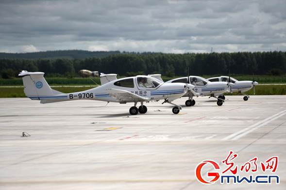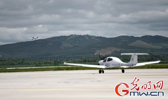 內(nèi)蒙古扎蘭屯成吉思汗機場,飛行學(xué)員們正在駕駛訓(xùn)練機進行飛行訓(xùn)練。光明網(wǎng)記者 潘迪攝