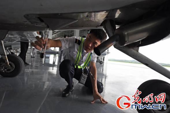 訓(xùn)練機起飛前,飛行學(xué)員們正在檢查機身狀況。光明網(wǎng)記者 潘迪攝