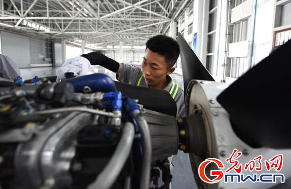 中國民航大學(xué)內(nèi)蒙古飛行學(xué)院的學(xué)員正在進行通用飛行器維修訓(xùn)練。光明網(wǎng)記者 潘迪攝