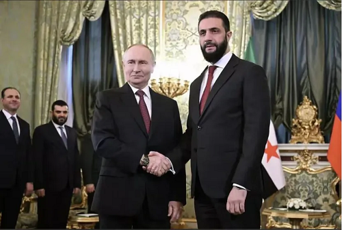 10月15日,沙拉首次訪問莫斯科,與普京舉行了長(zhǎng)達(dá)數(shù)小時(shí)的閉門會(huì)談。雙方重點(diǎn)討論了敘利亞重建、能源合作以及俄羅斯駐敘軍事基地的安排等重要議題。