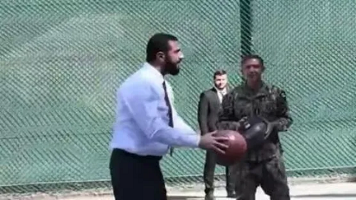 11月8日,沙拉訪美期間在美軍中央司令部打籃球。