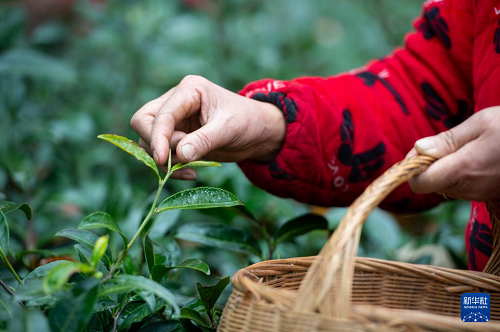 1月29日,湖北省秭歸縣郭家壩鎮(zhèn)王家?guī)X村茶農(nóng)在“絲綿茶1號(hào)”茶園采摘茶葉嫩芽。(新華社發(fā) 雷勇 攝)