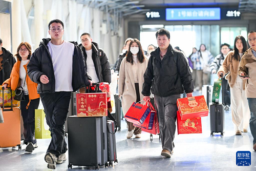 2月13日,旅客從南京火車(chē)站出行。(新華社發(fā) 楊素平 攝)