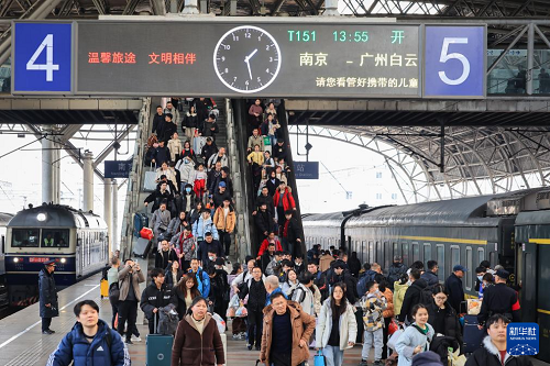 2月13日,旅客在南京火車(chē)站乘車(chē)出行。(新華社發(fā) 蘇陽(yáng) 攝)