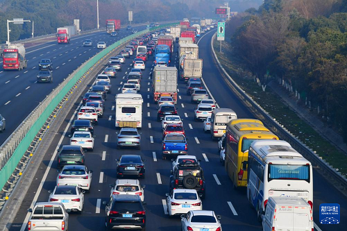 2月13日拍攝的京滬高速江蘇無(wú)錫段的車(chē)流。(新華社發(fā) 還月亮 攝)