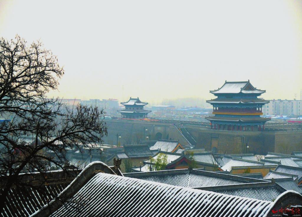 冬天一定要來忻州古城,因為這里的風光大不一樣——它寒冷、莊嚴,與遠處的系舟山連成一片,煙波朦朧;它黯淡、粗獷,與整個北方的豪邁自成一體,氣勢磅礴。它就像這雪,能給人帶去希冀。雪安,忻州古城。