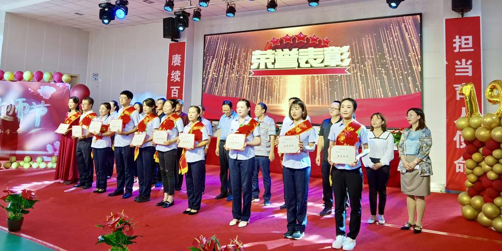 活動現(xiàn)場,學校對14名優(yōu)秀教師進行了表彰,其中1名為優(yōu)秀教育工作者,8名為模范教師,5名為模范班主任。通過表彰先進,鼓勵老師們再接再厲,繼續(xù)發(fā)揮愛崗敬業(yè)、立德樹人,三尺講臺育英才的精神,為下一代成長教育發(fā)揮更大的作用。