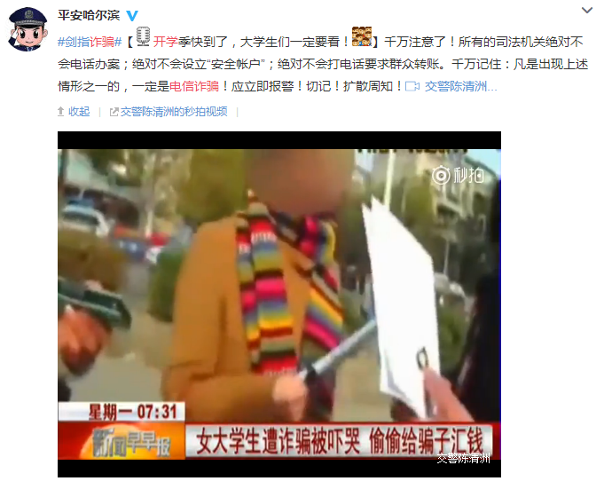 近日,一則新聞視頻在社交網(wǎng)絡(luò)上廣為流傳,一名女大學(xué)生聽信了冒充刑警的詐騙犯,前往銀行匯款,幸好被銀行工作人員及時(shí)發(fā)現(xiàn)并制止。視頻中,直到女孩的家長(zhǎng)和真正的警察出現(xiàn),女孩仍然對(duì)騙子的話深信不疑,騙子忽悠功力可見一斑。