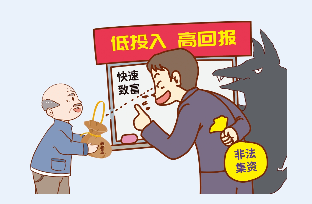 編造多種“天上掉餡餅”、“一夜暴富”的故事,來抓住人們的心理,吸引群眾上當(dāng)受騙。通過暴利誘惑人們投資參與,是非法集資的傳統(tǒng)常見手段,所以當(dāng)我們面對(duì)高額回報(bào)的時(shí)候, 一定要提高警惕。