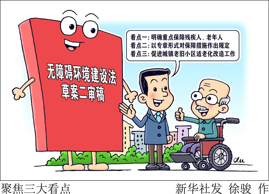 去年10月草案一審稿提請審議后,征求各方面意見。此次提請十四屆全國人大常委會第二次會議審議的草案二審稿,吸納各方面意見建議,突出無障礙環(huán)境建設基本定位,增加“保障措施”專章,進一步完善城鎮(zhèn)老舊小區(qū)無障礙設施和適老化改造中加裝電梯問題有關規(guī)定,在“重點”“難點”問題上精準“出招”。