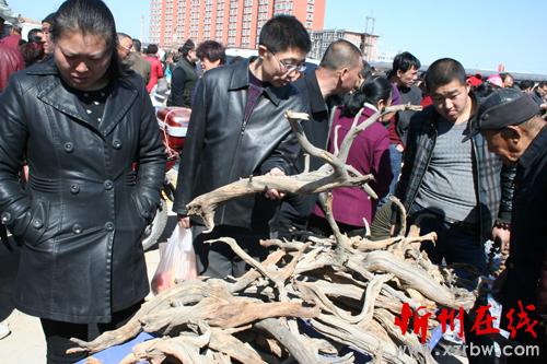 3月13日,原平市集貿(mào)市場上農(nóng)民正在賣形態(tài)各異廢棄的柏樹木根枝 他們變廢為寶促增收,很受市民喜愛收買。該市,采取多措并舉積極引導農(nóng)民增收致富,加快奔小康步伐。(趙月仁 攝)