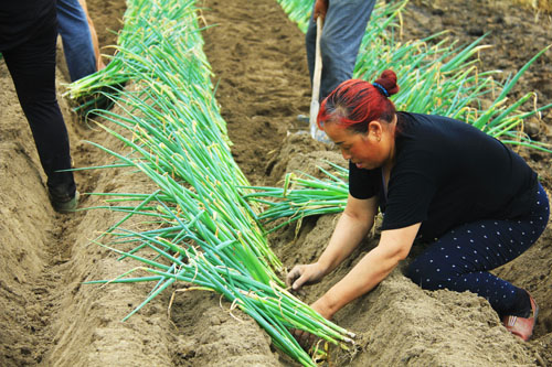 原平:收割小麥栽大蔥