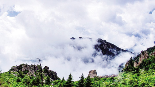 蘆芽山系管涔山的主峰,位于寧武縣境內(nèi),海拔2739 米。這里峰巒重疊,簇?fù)泶笮?00 多座山峰,山峰尖峭,怪石嶙峋,林木茂密;夏季的蘆芽山多陣雨,陣雨過后日出天晴,必有氣勢(shì)磅礴的云霧景觀出現(xiàn),如夢(mèng)幻仙境,令游人迷醉。(曹建國(guó))