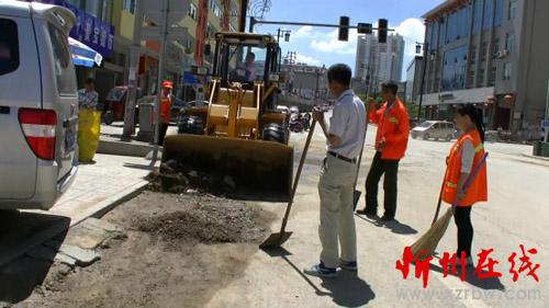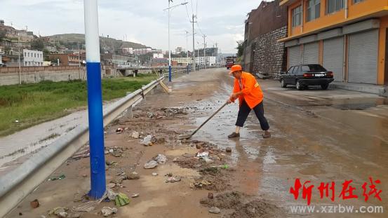偏關(guān):暴雨過(guò)后留污泥 環(huán)衛(wèi)工人忙清理
