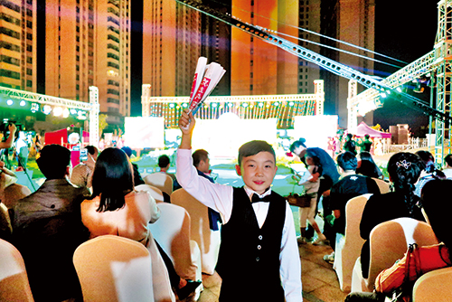 月光皎潔,清輝遍灑,這夜雖是農(nóng)歷八月十三,月亮卻已迫不及待地圓了起來(lái)。花好月圓、春花秋月、花前月下……月宮是神話中的仙境,而此時(shí)泛華酒店的后花園里也如仙境一般,琴、詩(shī)、書法共同演繹《春江花月夜》,讓現(xiàn)場(chǎng)的500余名觀眾如癡如醉。面容清秀、刺繡大紅旗袍在身的琴師端坐在舞臺(tái)的左側(cè),雙手拂動(dòng),琴聲綿綿,舒心悅耳;鋪紙、執(zhí)筆、蘸墨、揮毫,舞臺(tái)中央的呂峰仿佛置身自家書房之中,墨香中三幅書法作品轉(zhuǎn)瞬完成;“醉眼看世界,朦朧看人生……李白醉了,醉了!”舞臺(tái)右側(cè)的朗誦者孫美琴將李白的一生揉碎在他的詩(shī)中,就著朦朧的月色,用獨(dú)特的聲線摻在她的情感中,沉醉了自己,也迷醉了觀眾。