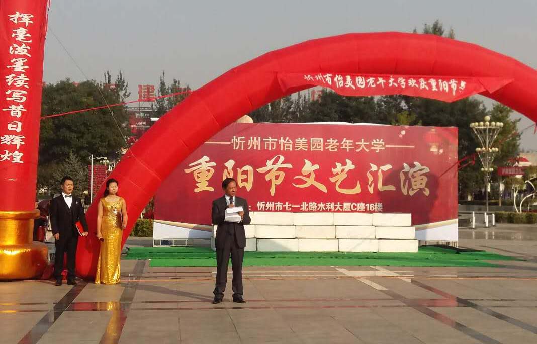 伴隨著怡美園老年大學(xué)全體學(xué)員共同表演的舞蹈《歡聚一堂》,忻州市怡美園老年大學(xué)校長鄧九高代表該校全體師生對老年朋友們致以節(jié)日的慰問,在表達了提倡繼續(xù)發(fā)揚尊老愛老的中華傳統(tǒng)美德,經(jīng)營好自己的家庭,盡孝心、促和諧,為構(gòu)建美好和諧的社會氛圍貢獻力量的同時,也對年輕人寄以希望,享受生命,感恩陽光。