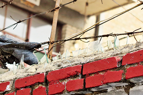 記者在利民西街北三巷看到,國稅局宿舍、氣象局宿舍的臨街圍墻也存在布滿碎玻璃的現(xiàn)象。希望相關(guān)單位借創(chuàng)衛(wèi)的東風(fēng),盡快去除圍墻上的碎玻璃和鐵絲網(wǎng),安裝電子監(jiān)控系統(tǒng),使街道整潔起來。(蘆成雙 供稿 魯明強(qiáng) 攝)