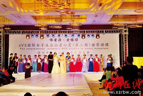 2月19日晚,“4VS國際女子五臺山身心靈游學游課”暨“忻州市大美心靈之舟優(yōu)雅盛典”如期舉行。指導老師邱兵來到我市進行指導培訓,打造忻州新時尚女性。本次活動時間為三天,按照國際化標準T臺秀進行,特訓營培訓表演精彩紛呈,還有來自外省復訓學員助興演出。本報記者 陳寶 攝
