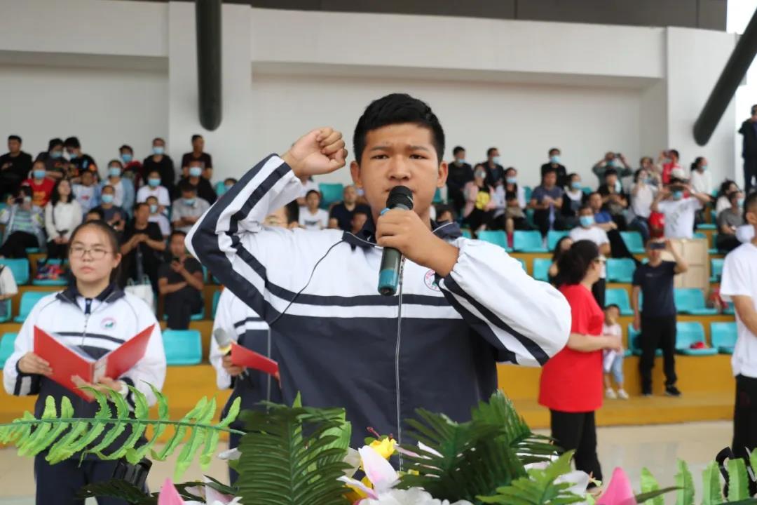 “少年智則國智,少年富則國富;少年強(qiáng)則國強(qiáng),少年獨(dú)立則國獨(dú)立……”激昂奮進(jìn)的聲音在北校區(qū)的操場上空回響,在全體高三學(xué)生《少年中國說》激情澎湃的誦讀聲中,本次大會正式開始。莊嚴(yán)的升旗儀式后,學(xué)生代表、教師代表和家長代表依次獻(xiàn)詞:好友同窗與共的奮斗時(shí)光,老師日復(fù)一日的悉心陪伴,父母無私無盡的付出關(guān)愛,在一句句溫情感人的獻(xiàn)詞中歷歷浮現(xiàn),激蕩心靈。