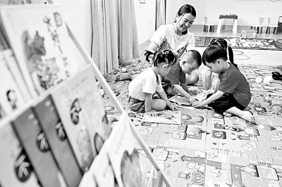 福建省晉江市第十實驗小學教師子女托管室,老師為幼兒園放學后的孩子們講繪本。新華社發(fā)