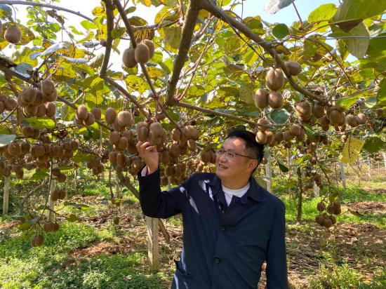 10月18日,李才國正在果園查看獼猴桃長勢。新華社記者李偉 攝