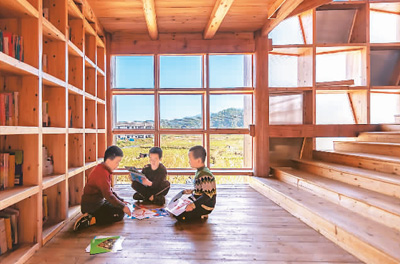 據(jù)介紹,坪坦書屋位于湖南省懷化市通道侗族自治縣坪坦鄉(xiāng)侗族村一所有400多名學童的小學庭院內,于2021年底啟用。這棟建筑物樓高3層,面積約180平方米,完全以木材建造。書屋繼承了傳統(tǒng)侗族建筑的特色,由兩個交錯的螺旋樓梯組成,采用瓦片坡屋頂和榫卯相扣的柱梁木結構系統(tǒng),既可讓孩子們閱讀,也可讓他們玩耍和探索。(陳然)