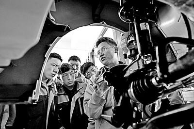 9月8日,在青海省果洛藏族自治州職業(yè)技術學校,汽車運用與維修專業(yè)學生在實訓課程上學習。 新華社發(fā)