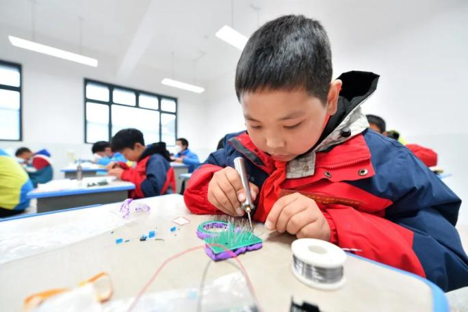 2023年12月14日,在湖北省襄陽市保康縣后坪鎮(zhèn)中心學(xué)校,學(xué)生們參加電子制作競(jìng)賽。通訊員 楊韜 黃玲 攝