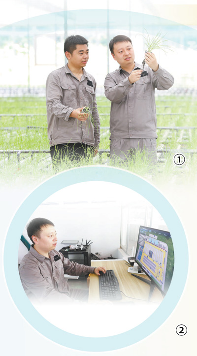 圖①:李脈(右)在觀察韭菜的生長(zhǎng)情況。