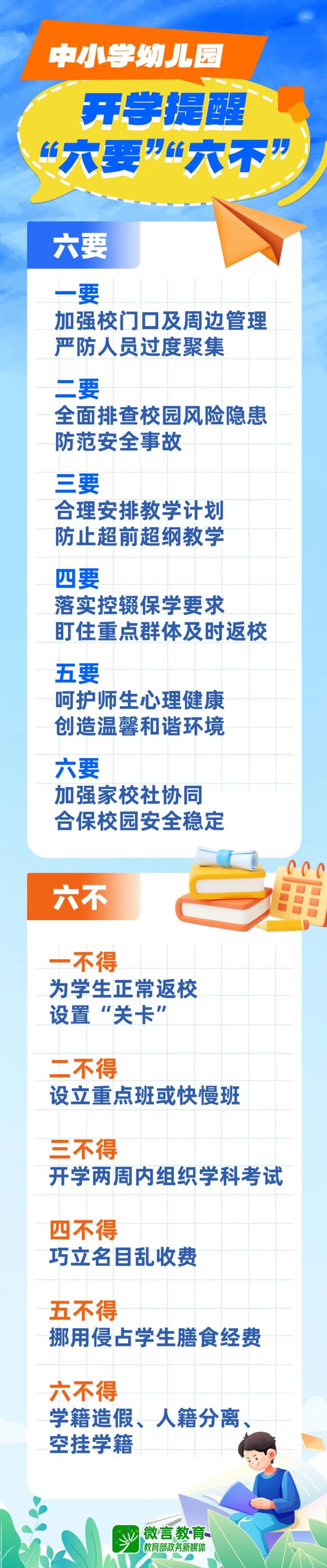 開學季|小學幼兒園開學提醒“六要”“六不”