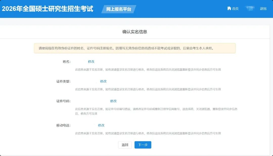 確認(rèn)實(shí)名注冊(cè)信息后,考生要按照《2026年全國(guó)碩士研究生招生工作管理規(guī)定》要求填寫(xiě)正確的學(xué)歷(學(xué)籍)信息。