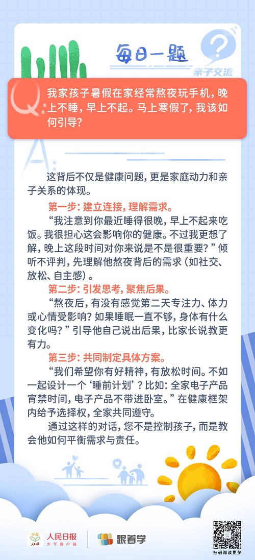 每日一題丨孩子假期在家,經(jīng)常熬夜玩手機(jī)至凌晨,家長該如何引導(dǎo)?
