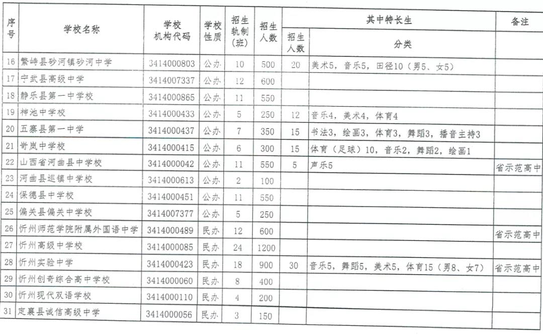2.忻州市2020年忻州一中、十中招生指標(biāo)分縣計劃