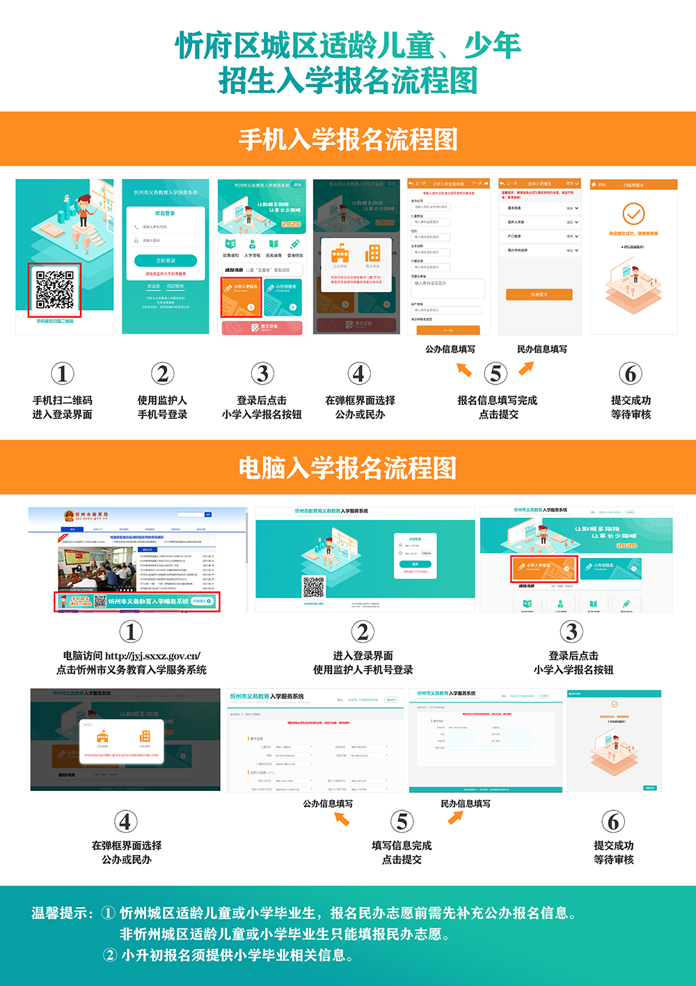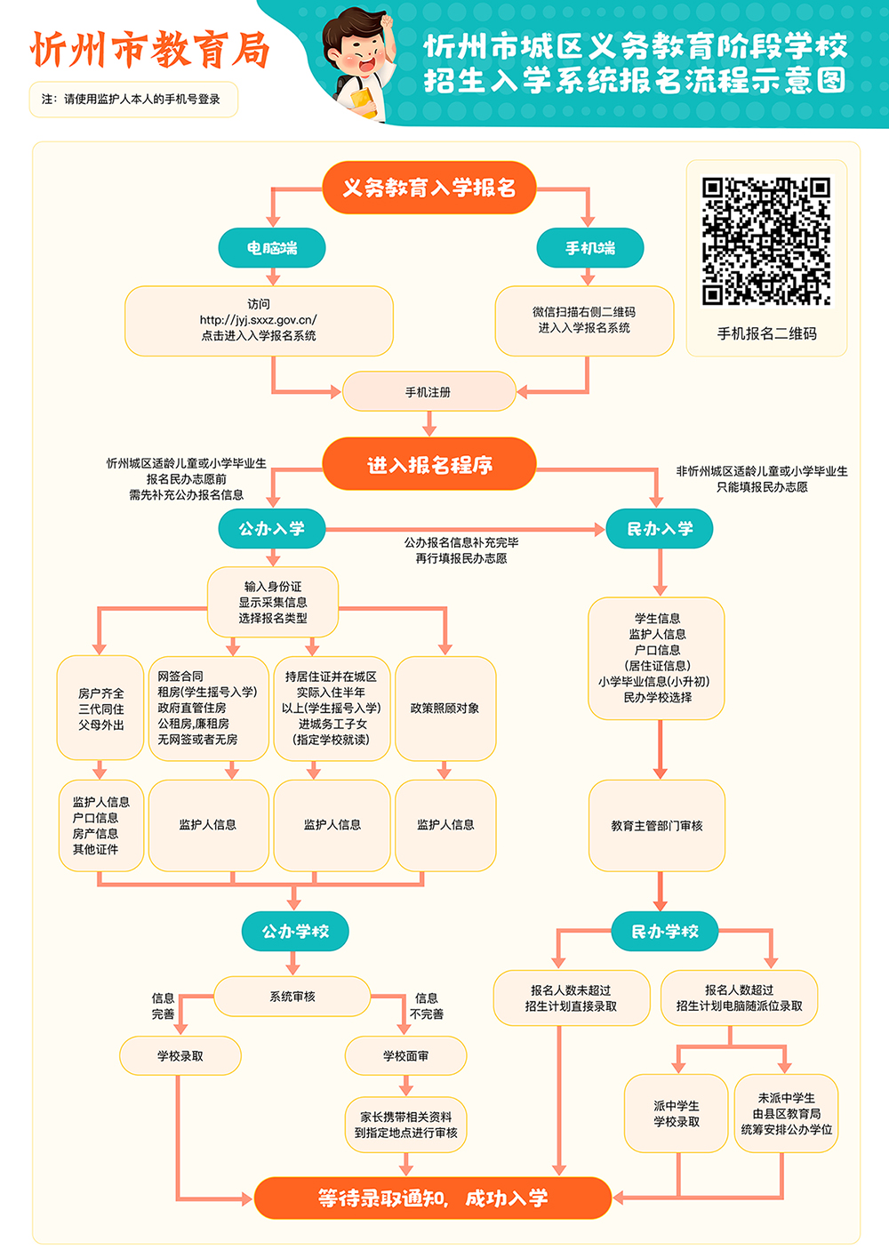 忻州市城區(qū)義務(wù)教育階段學(xué)校招生入學(xué)系統(tǒng)報名流程示意圖
