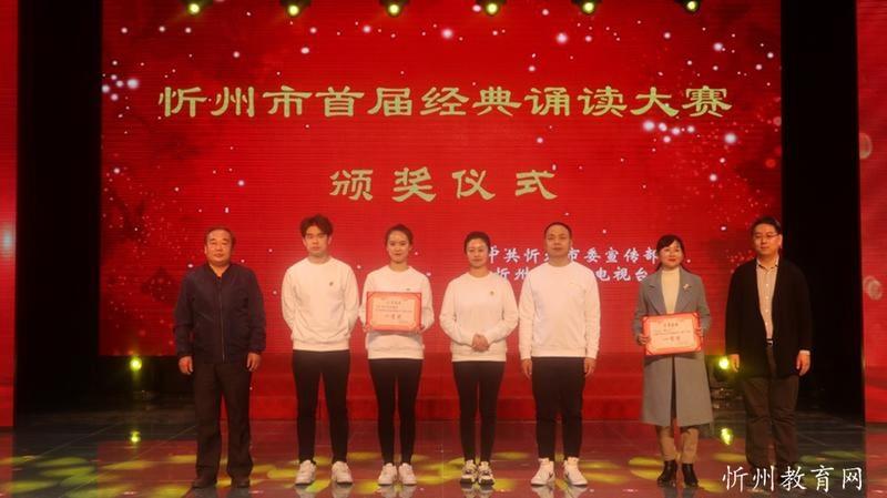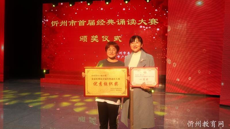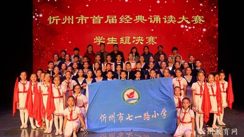 “共讀中華經(jīng)典,聆聽古詩書韻”。由中共忻州市委宣傳部主辦,忻州市廣播電視臺承辦 “忻州市首屆經(jīng)典誦讀大賽”經(jīng)過初賽海選和緊張激烈的復(fù)賽和決賽,于11月1日落下帷幕。本次比賽學(xué)生組共有四十一個參賽節(jié)目,經(jīng)過角逐,有十個節(jié)目進入了決賽。決賽采取評委當(dāng)場亮分,現(xiàn)場點評的方式,最終評出一等獎一名,二等獎二名,三等獎三名,最佳風(fēng)采獎四名。七一路小學(xué)以98.51分的成績奪冠,榮獲學(xué)生組一等獎。同時學(xué)校也榮獲優(yōu)秀組織獎。
