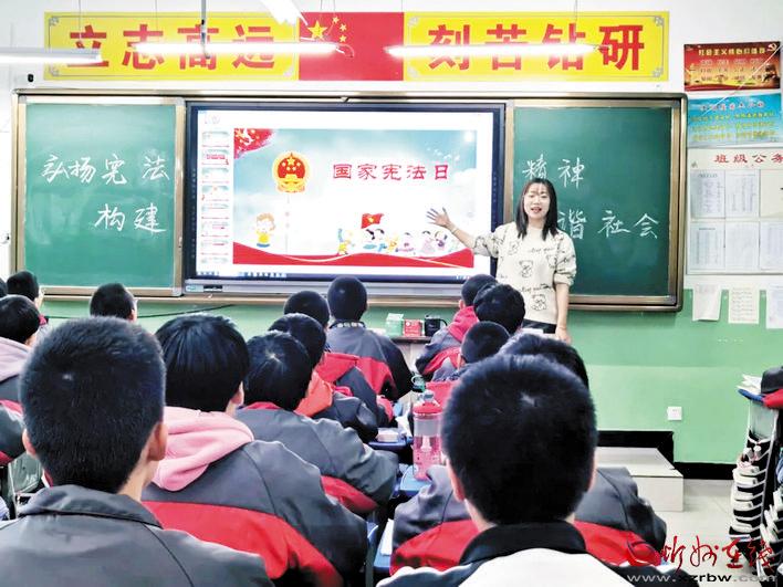 本報(bào)訊 2020年12月4日,是我國第七個國家憲法日,為大力弘揚(yáng)憲法精神,向?qū)W生普及憲法和法律知識,引導(dǎo)青少年學(xué)生自覺成為憲法的忠實(shí)崇尚者、自覺遵守者、堅(jiān)定捍衛(wèi)者,營造良好的校園法治教育環(huán)境和氛圍,北方中學(xué)開展了以“弘揚(yáng)憲法精神,護(hù)航少年成長”為主題的“12·4憲法日”系列活動。