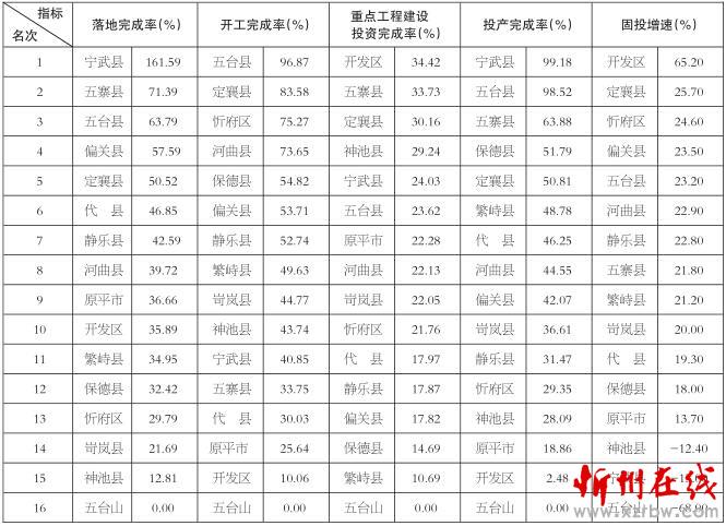 忻州1-5月各縣(市、區(qū))重點(diǎn)工程完成率和固定資產(chǎn)增速排名表