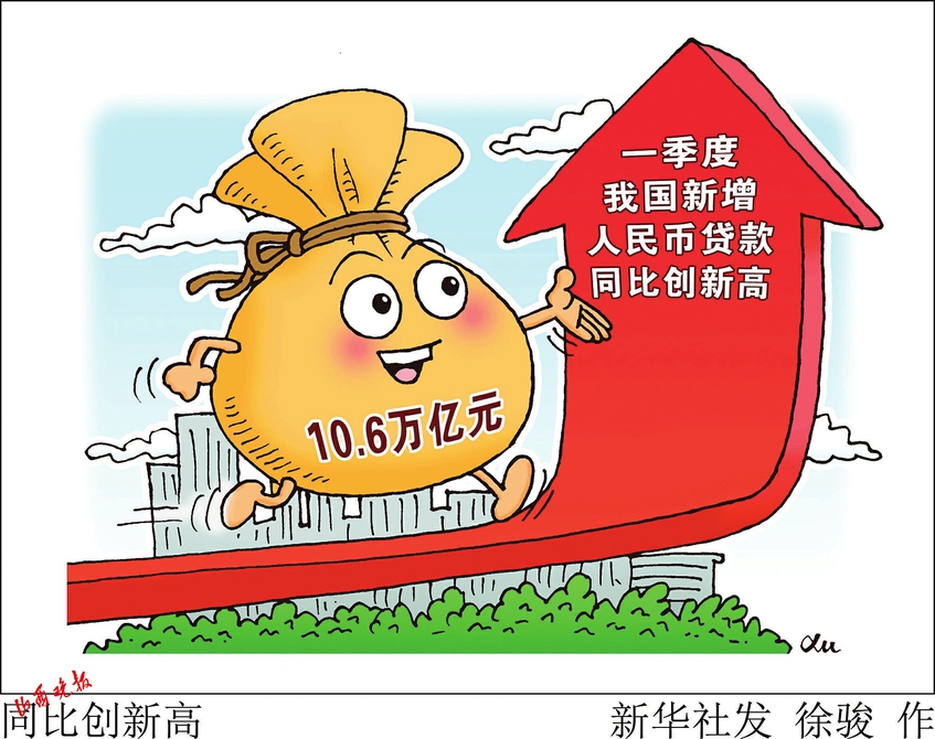 據(jù)新華社電 我國(guó)首季金融統(tǒng)計(jì)數(shù)據(jù)4月11日出爐,當(dāng)季新增人民幣貸款同比創(chuàng)新高。中國(guó)人民銀行當(dāng)日發(fā)布的數(shù)據(jù)顯示,一季度我國(guó)人民幣貸款增加10.6萬(wàn)億元,同比多增2.27萬(wàn)億元。其中,3月份人民幣貸款增加3.89萬(wàn)億元,同比多增7497億元。