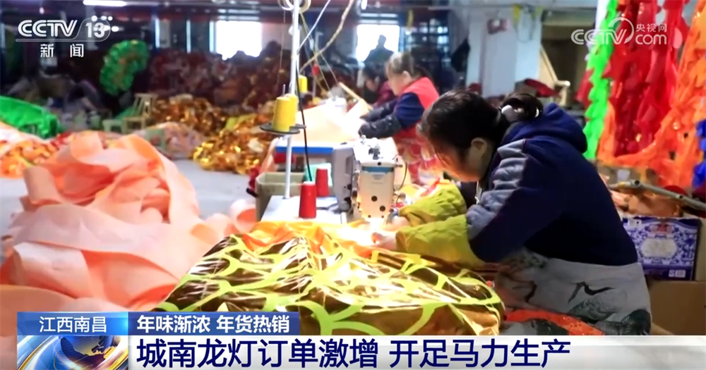 江西南昌的城南龍燈有著700多年的制作歷史。春節(jié)前,當(dāng)?shù)爻悄淆垷羯a(chǎn)基地訂單激增。數(shù)百平方米的廠房?jī)?nèi),設(shè)置了龍頭、龍身、龍衣、龍尾等制作區(qū),50多名工人都在有條不紊地完成自己的工序。在發(fā)貨區(qū),師傅們忙著裝貨打包,趕在年前給來自全國(guó)和海外的訂單發(fā)貨。