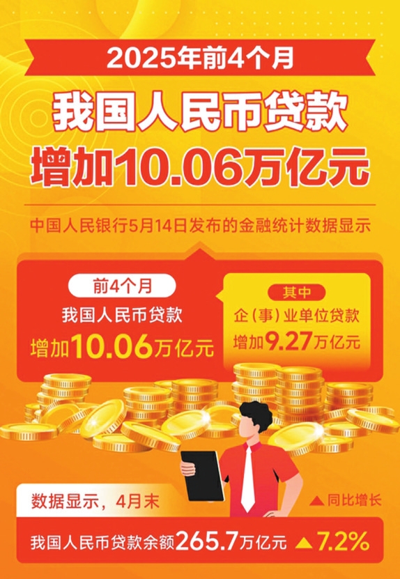 數(shù)據(jù)顯示,前4個(gè)月,我國(guó)企(事)業(yè)單位貸款增加9.27萬億元,其中中長(zhǎng)期貸款增加5.83萬億元。也就是說,超9成的新增貸款投向了企業(yè),其中中長(zhǎng)期貸款占比超6成,為企業(yè)投資和生產(chǎn)提供了穩(wěn)定而有力的支持。