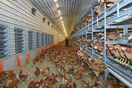 偏關縣坐落于我省西北部冷涼山區(qū),空氣清新、水源干凈、土壤優(yōu)質(zhì),這實打?qū)嵉摹吧鷳B(tài)家底”為優(yōu)質(zhì)蛋品孕育提供了天然溫床,永奧生態(tài)農(nóng)業(yè)于2019年應時落戶偏關縣窯頭鄉(xiāng)張家山村,建起高標準規(guī)模化非籠養(yǎng)蛋雞養(yǎng)殖基地——70畝蛋雞農(nóng)場里,20萬只蛋雞正享受著立體棲架式散養(yǎng)系統(tǒng)帶來的“自由生活”。養(yǎng)殖基地內(nèi)采食、飲水、糞便處理全流程自動化,環(huán)境控制系統(tǒng)精準調(diào)控溫濕度,蛋雞享有寬敞的活動空間,可自由覓食、沙浴,飼料則以當?shù)厥a(chǎn)的雜糧副產(chǎn)品為主?!半u群心情好,產(chǎn)的蛋自然優(yōu)質(zhì)?!惫究偨?jīng)理劉開永笑著說。